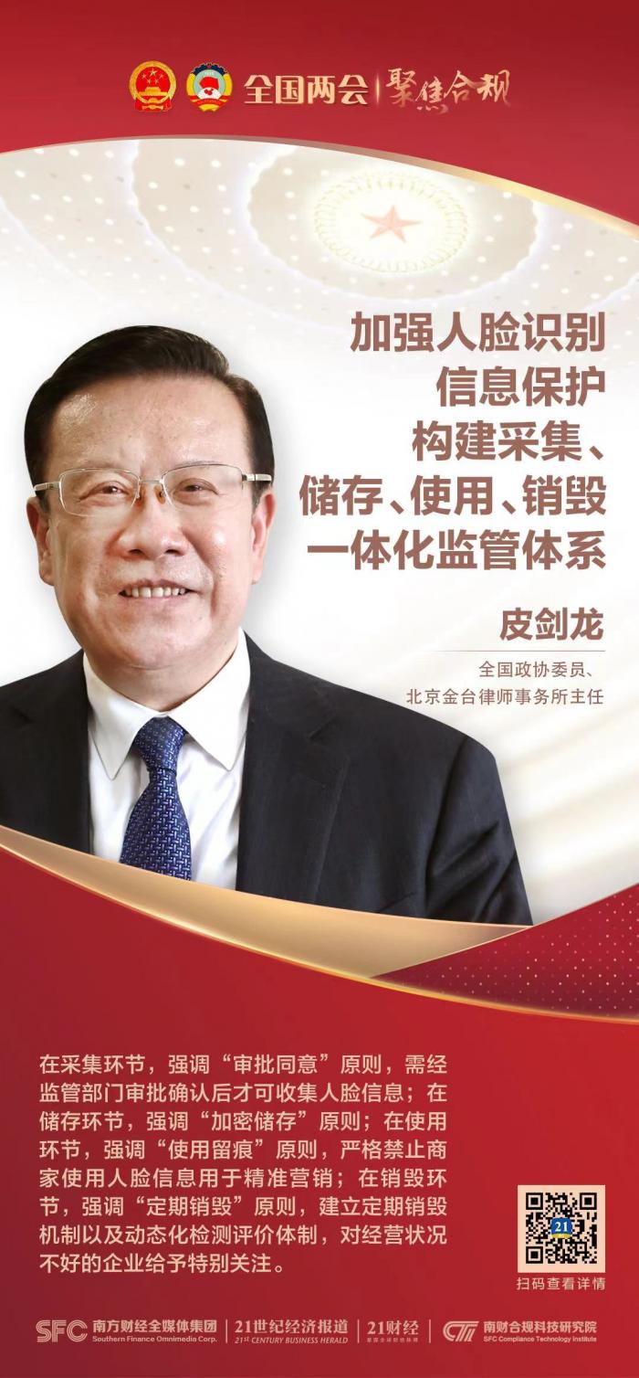 3. 全国政协委员皮剑龙:加强人脸识别信息保护 构建采集、储存、使用、销毁一体化监管体系