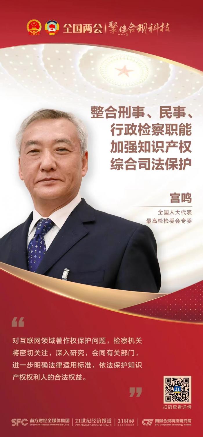 1. 最高检检委会专委宫鸣:整合刑事、民事、行政检察职能,加强知识产权综合司法保护
