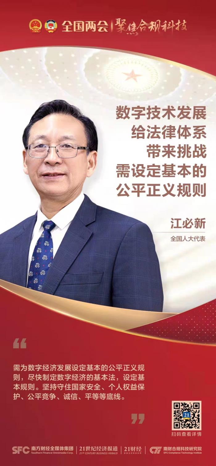 1.全国人大代表江必新:需为数字经济发展设定基本的公平正义规则