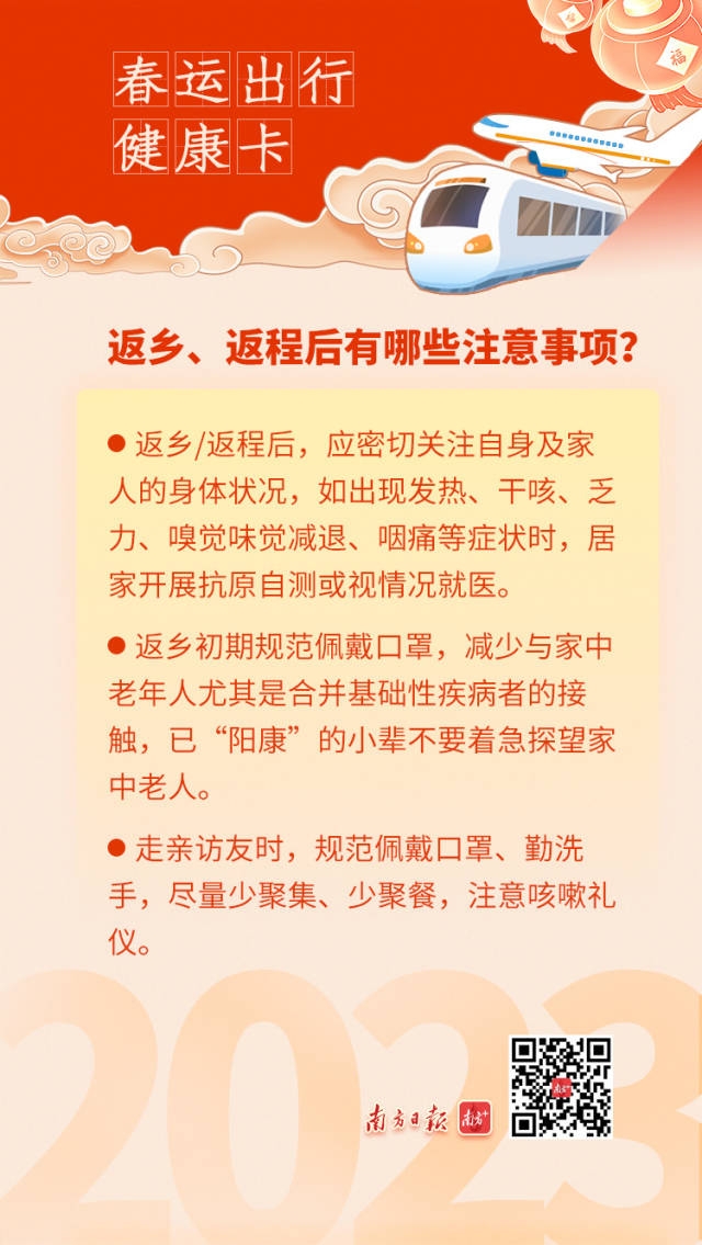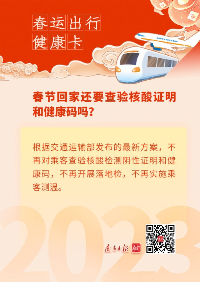 1月7日,2023年春运正式来开帷幕。归家心切的同时,大家也很关心,春运回家乘坐飞机、高铁出行是否还需要查验核酸和健康码?旅途中如何做好防护?担心“复阳”、“二次感染”怎么办?