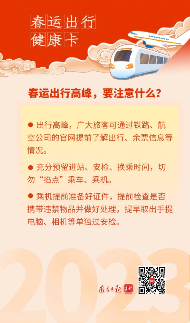 南方+记者综合采访了疾控、交通部门,整理了这份春运出行健康卡。回家路上,带上这份健康卡,平安出行!