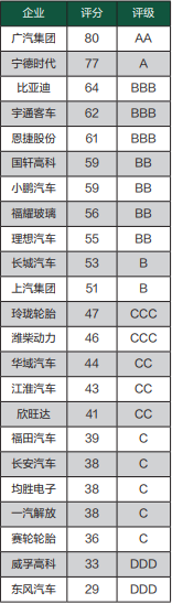 图表1:汽车行业23家样本企业低碳发展能力评级表