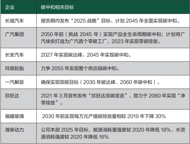 在23家汽车行业样本企业中,有8家企业宣布了自己的碳中和目标(如表5所示)。