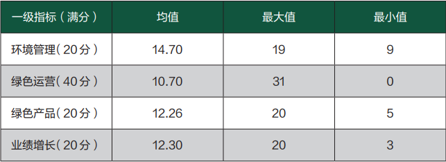 汽车制造行业样本企业在环境管理维度的平均得分为14.7(满分为20分),得分率在四个一级指标中最高(如图表4所示)。