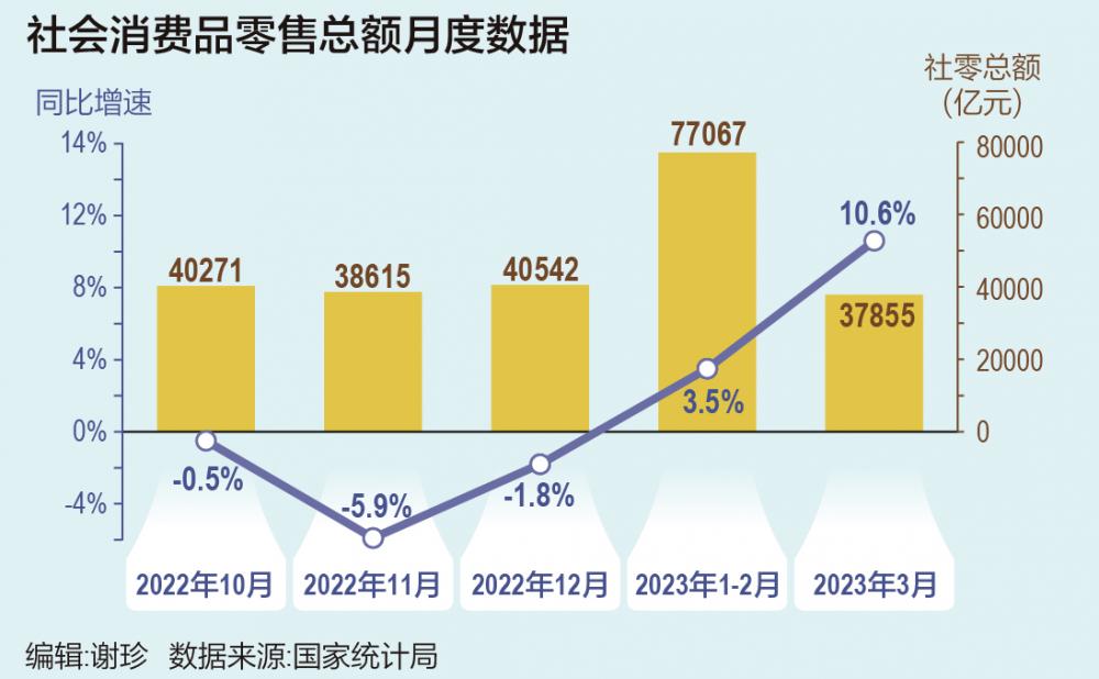 今年以来,消费回升态势明显。3月份,社会消费品零售总额同比增长10.6%,比1-2月份加快7.1个百分点。