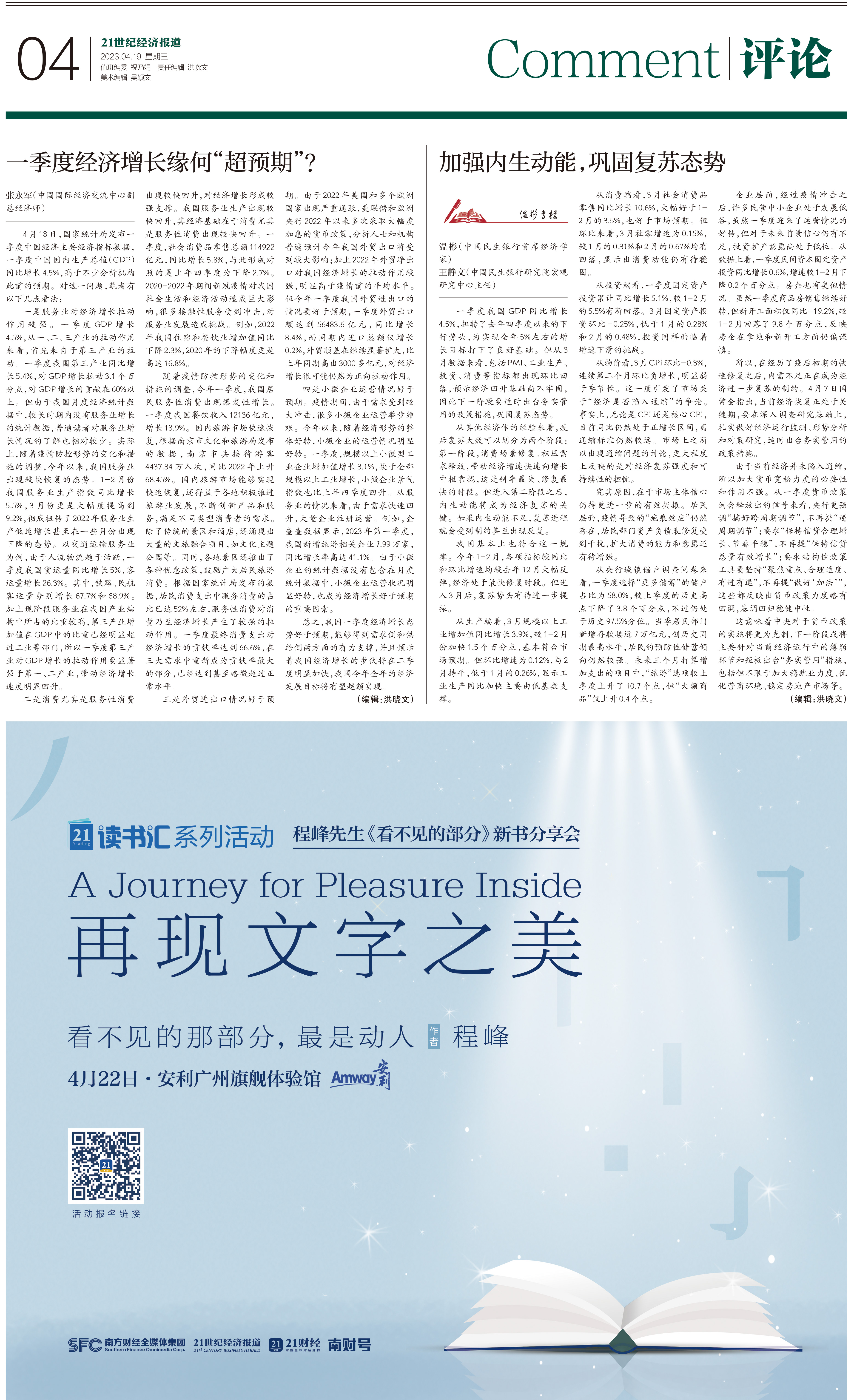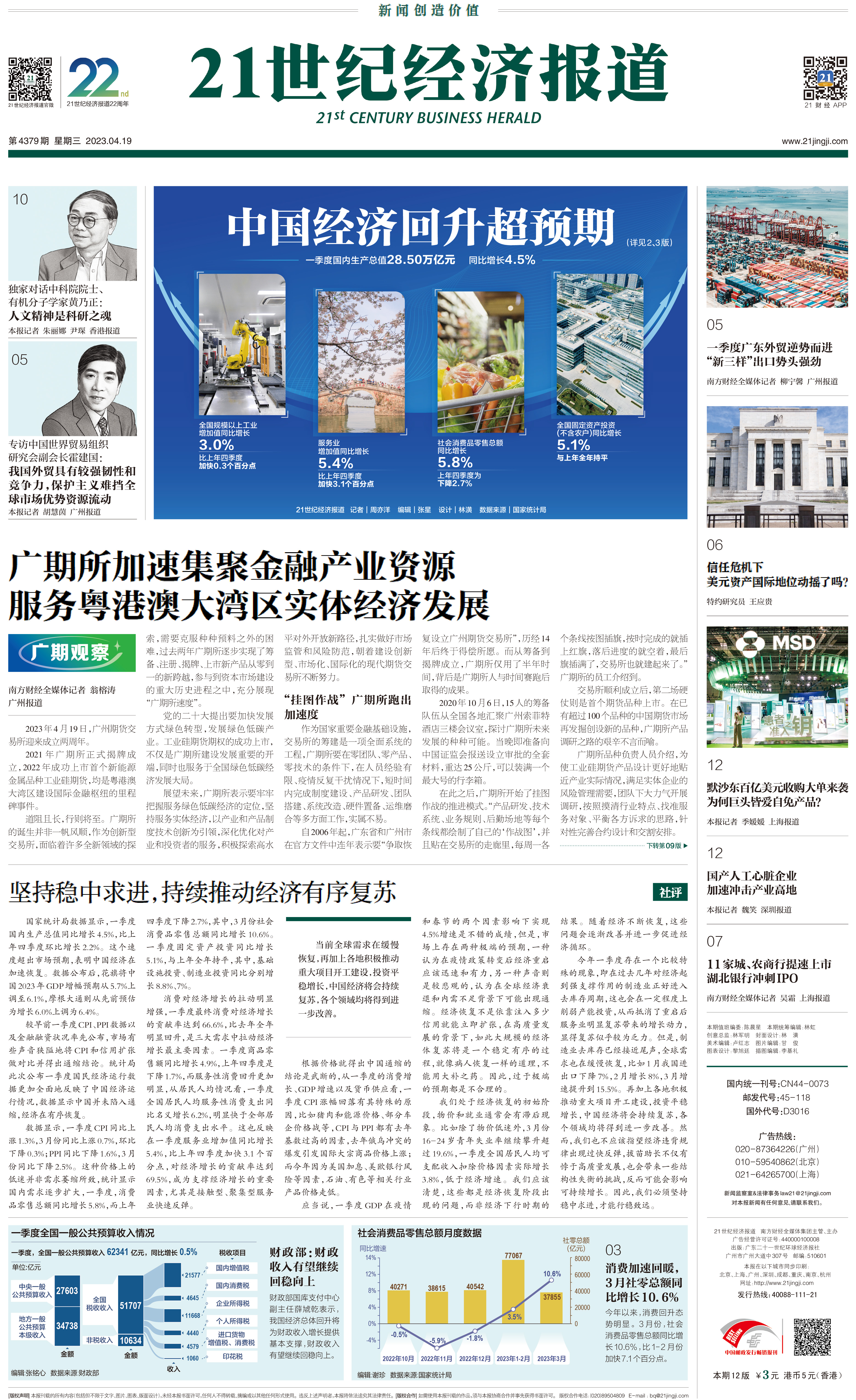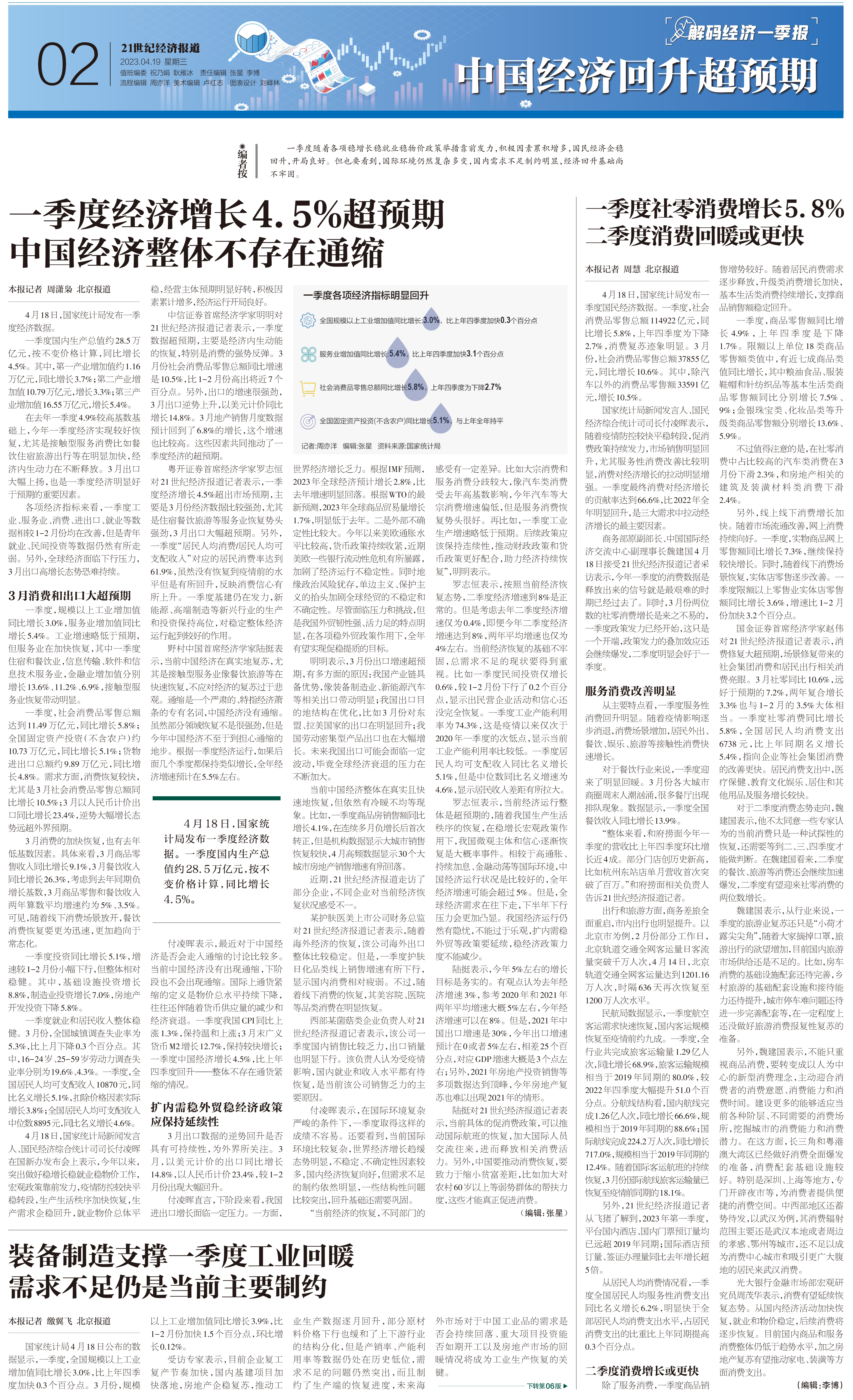 一季度随着各项稳增长稳就业稳物价政策举措靠前发力,积极因素累积增多,国民经济企稳回升,开局良好。但也要看到,国际环境仍然复杂多变,国内需求不足制约明显,经济回升基础尚不牢固。