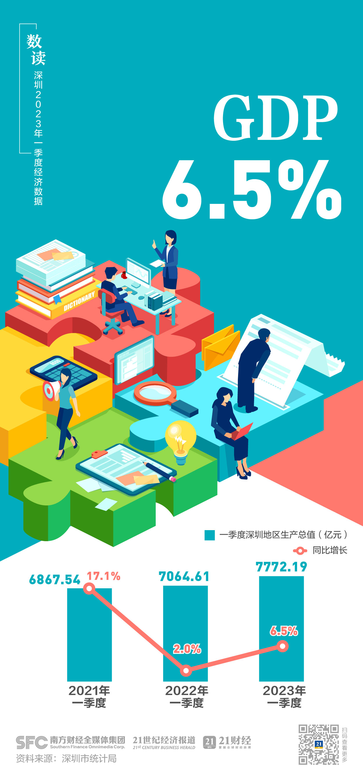 4月27日,深圳市统计局发布数据,根据广东省地区生产总值统一核算结果,2023年一季度,深圳地区生产总值为7772.19亿元,同比增长6.5%。