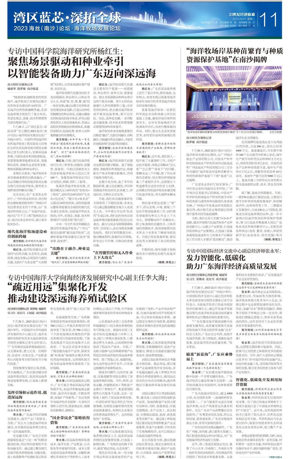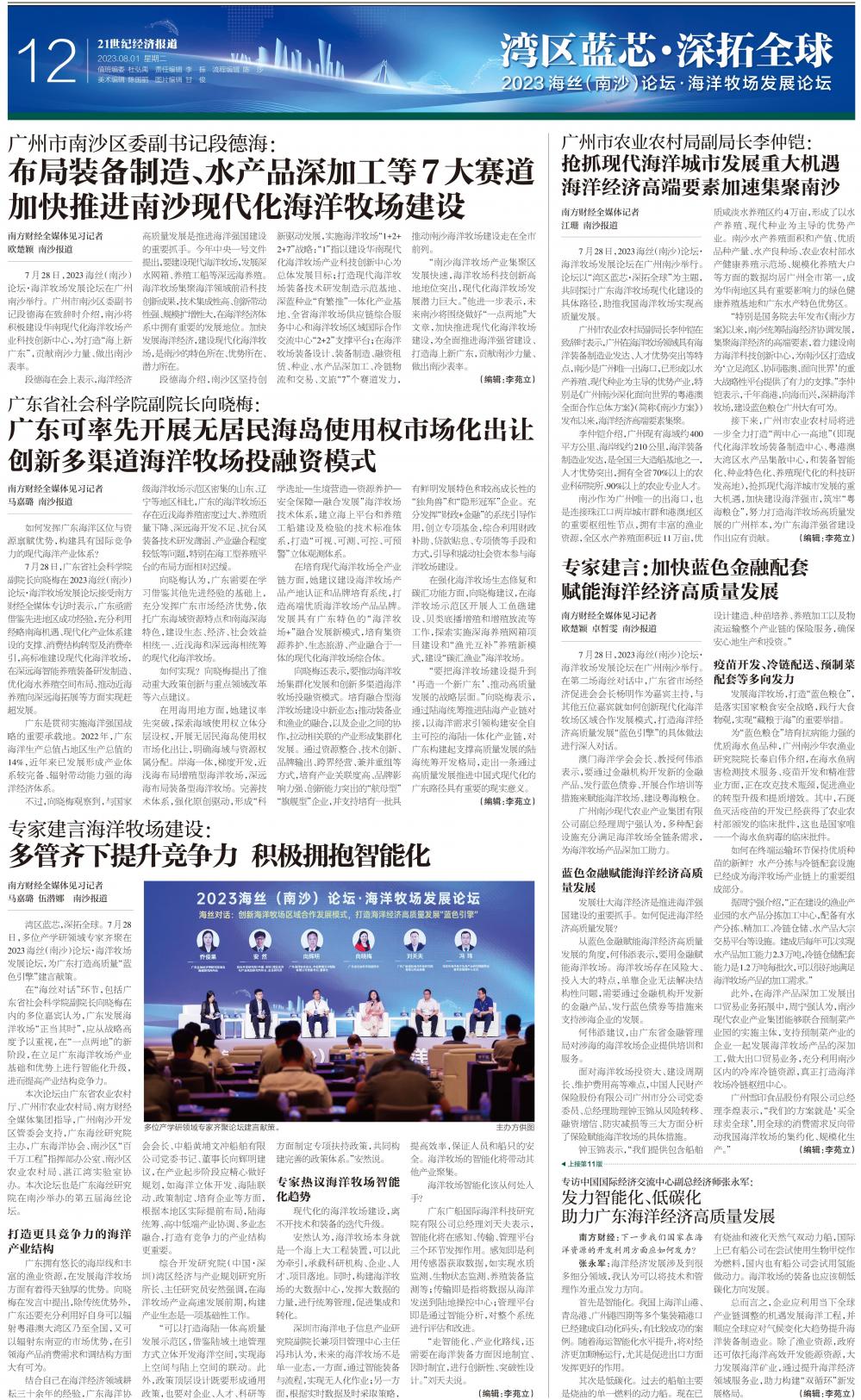 7月28日,以“湾区蓝芯·深拓全球”为主题的2023海丝(南沙)论坛·海洋牧场发展论坛在广州南沙举行。