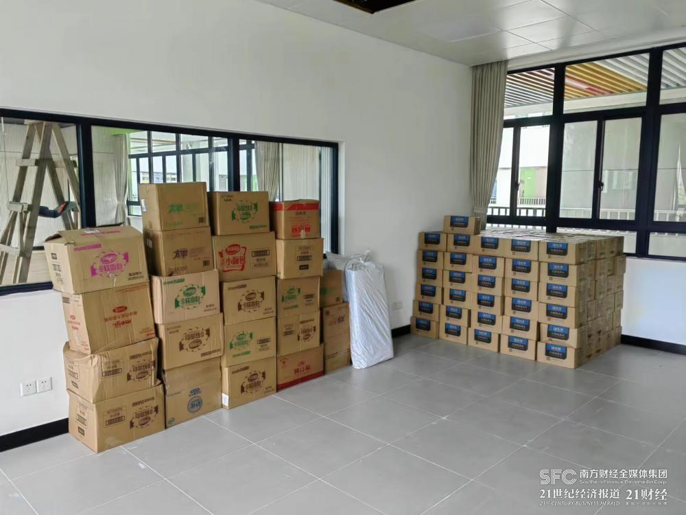 (备置饮用水、饼干面包、风扇、药品等应急物资,受访者供图)