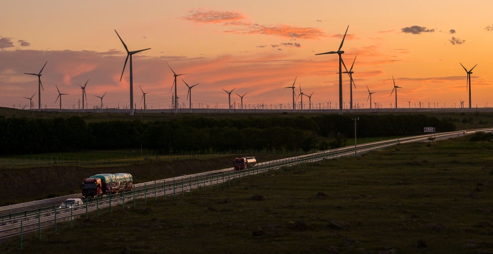 在河北省张家口市张北县境内拍摄的风力发电机(2023年8月18日摄)。新华社记者 李贺 摄