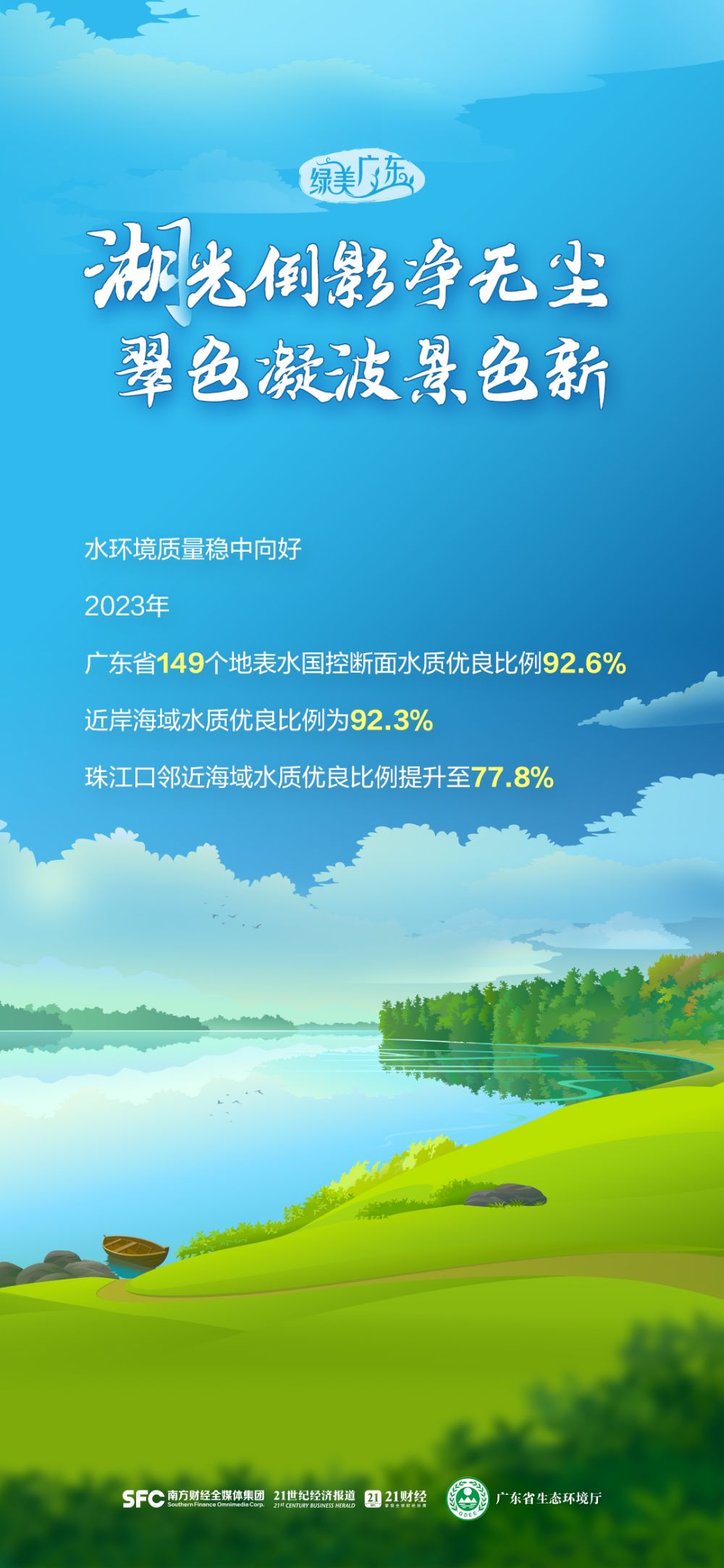 2023年,广东省149个地表水国控断面水质优良比例92.6%