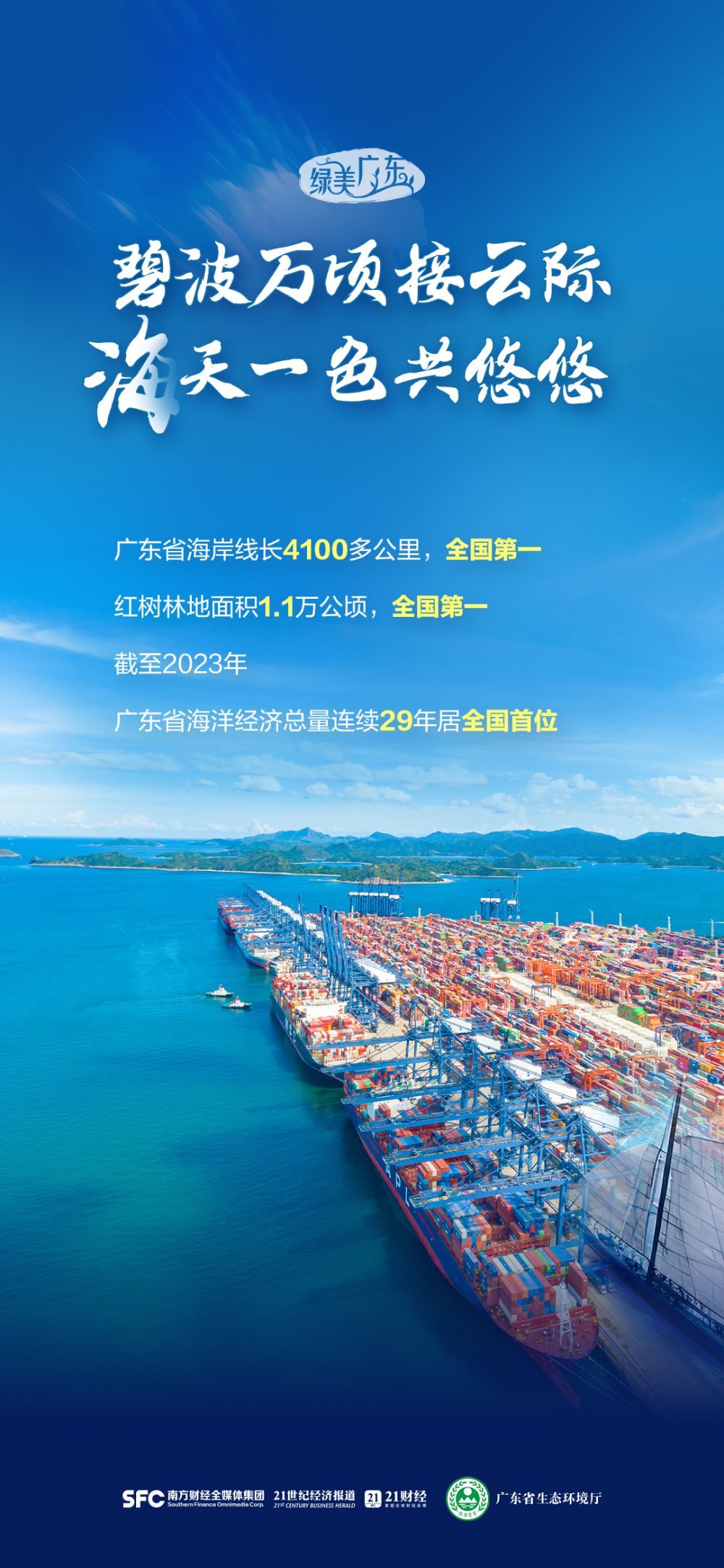 截至2023年,广东省海洋经济总量连续29年居全国首位