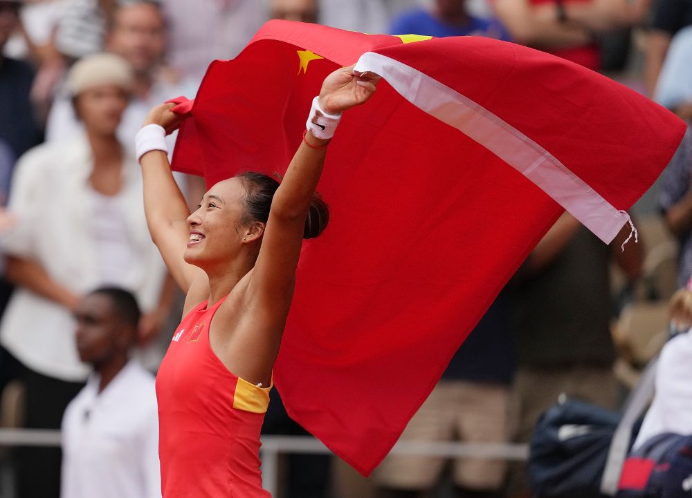 当地时间8月3日,在巴黎奥运会网球女子单打金牌赛中,中国选手郑钦文大比分2:0战胜克罗地亚选手维基奇,夺得金牌。