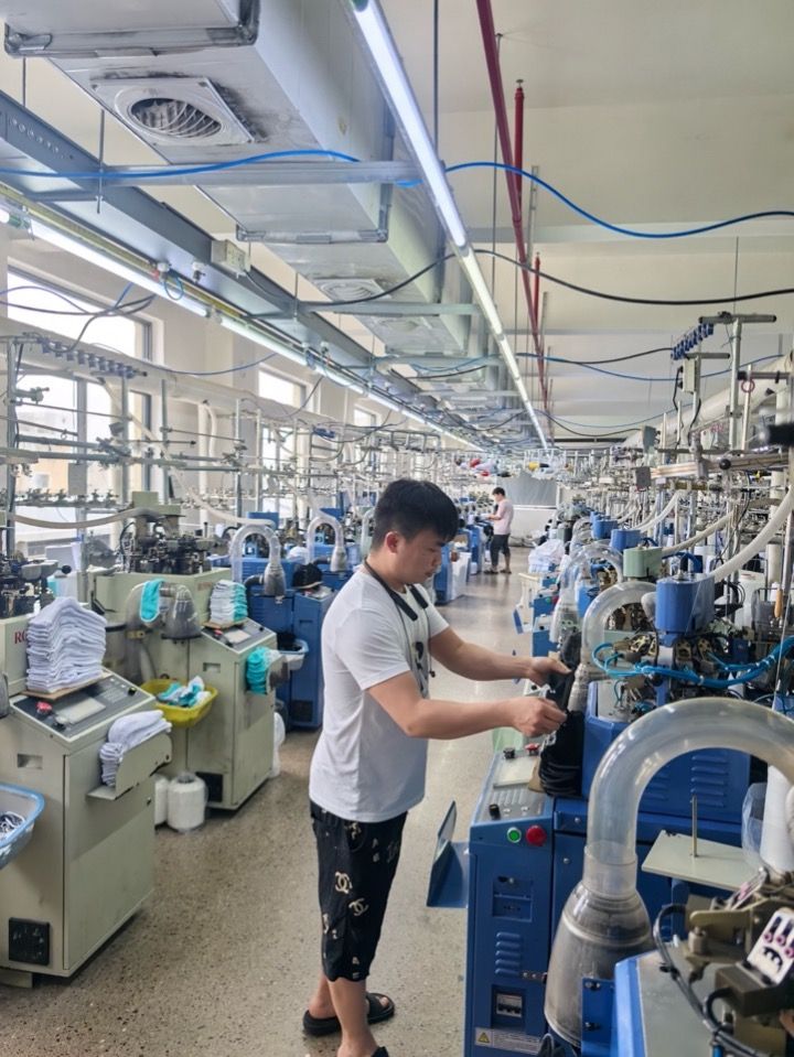 璟文进出口有限公司的生产线上有200多台袜子机,每台机器每天能生产300—400双袜子。经过吴庆芬的核算,生产线即将进入满负荷运转状态,仅完成这份30万双袜子的订单就需要持续生产到6月底。