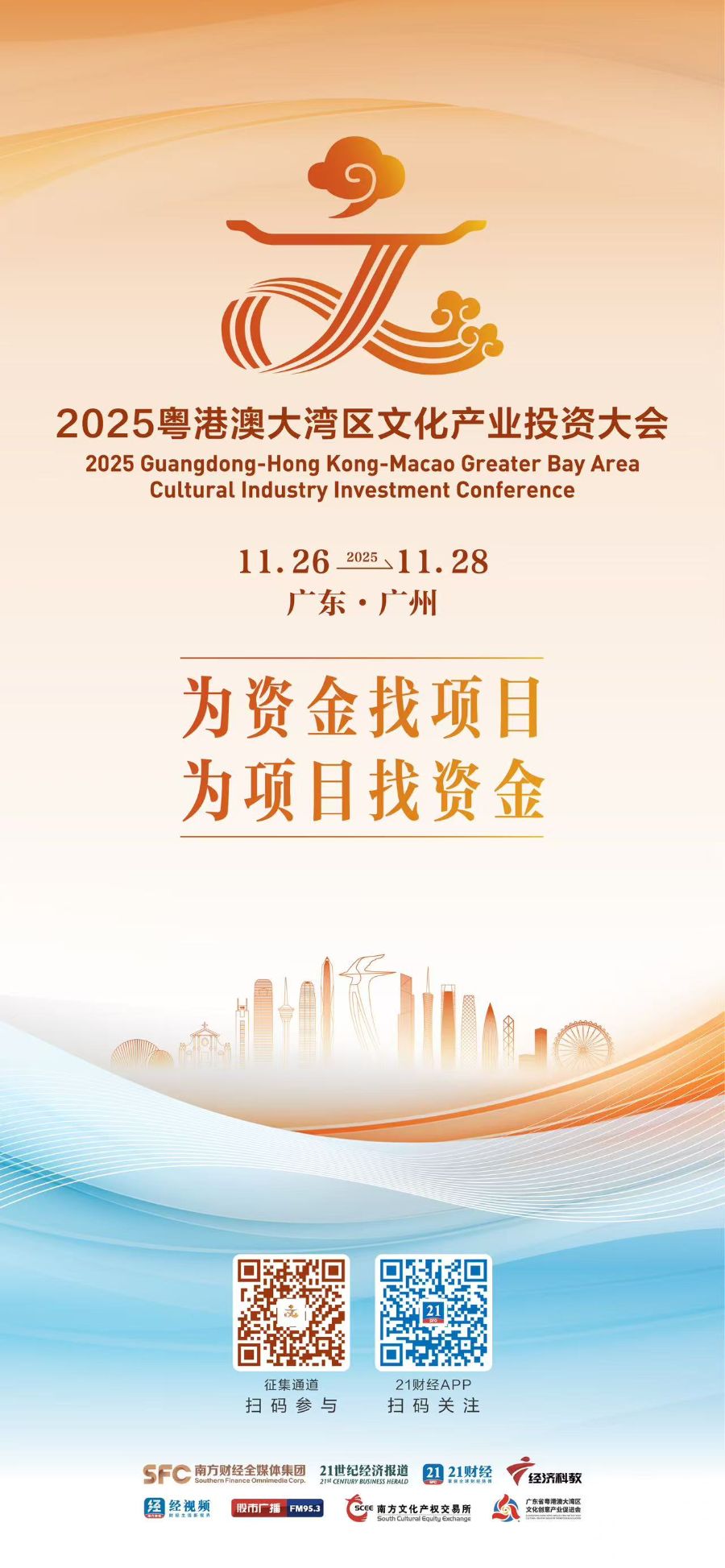 据介绍,计划11月26日—28日在广州举办的2025粤港澳大湾区文投会,将秉承“为资金找项目、为项目找资金”的运营理念,搭建文化企业与投资机构之间高效的投融资对接服务平台,致力于成为投资机构和文化企业的超级合伙人。大会将采用“3+365”办会模式,3天会期主要供文化企业和投资机构学习经验、交换信息、签约项目,更多的服务延伸到会期之外,提供全年全周期的投融资服务。