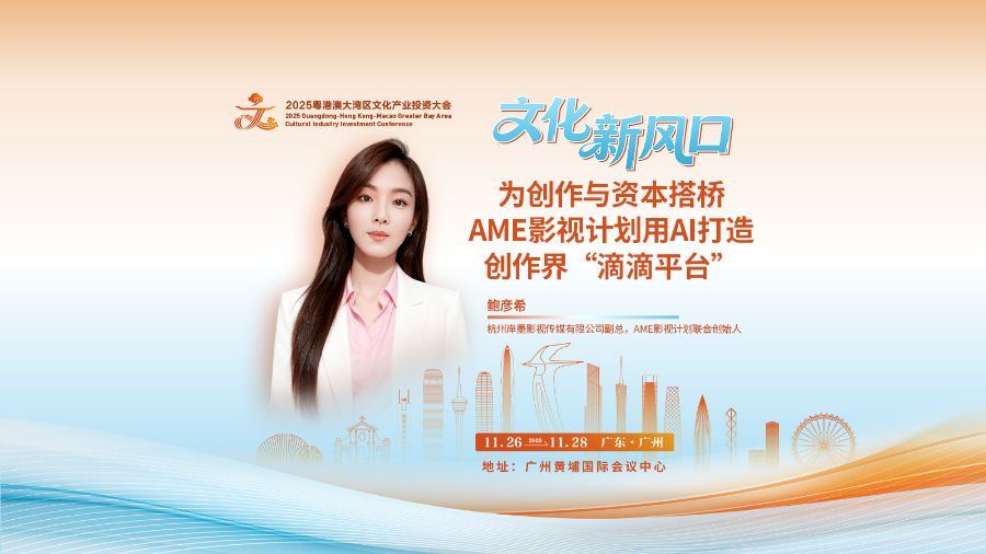 2025粤港澳大湾区文化产业投资大会(以下简称“大湾区文投会”)将于11月26日-28日在广州举办,这场盛会预计将再度激活文化产业与资本对接的“强磁场”。在大会召开前夕,杭州岸墨影视传媒有限公司副总、AME影视计划联合创始人鲍彦希接受南方财经记者专访,分享了AME在影视人才培养与未来生产方式探索上的创新实践。